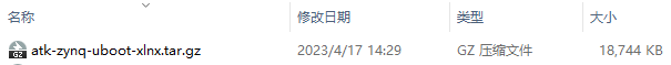 开发板出厂镜像使用的u-boot源码路径为:开发板资料盘(A 盘)\4_SourceCode\3_Embedded_Linux\资源文件\出厂镜像相关,在该目录下有一个名为atk-zup-uboot-xlnx.tar.gz的压缩包文件,如下所示: