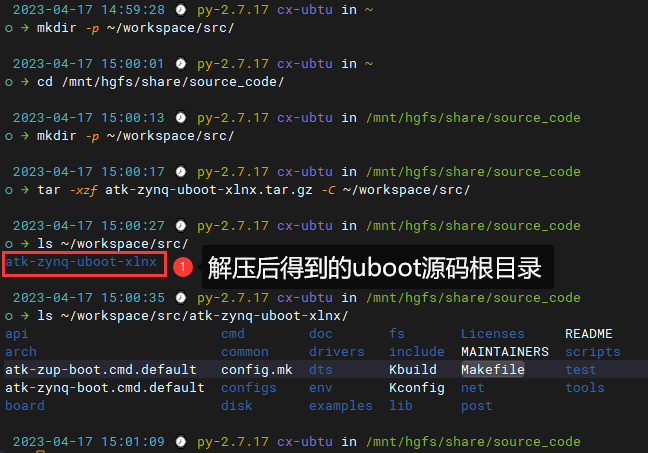 tar -xzf atk-zynq-uboot-xlnx.tar.gz -C ~/workspace/src/ #解压