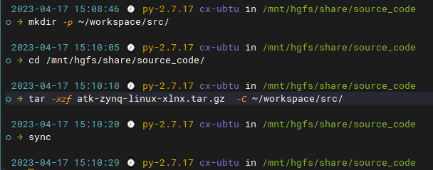 tar -xzf atk-zynq-linux-xlnx.tar.gz -C ~/workspace/src/ #解压