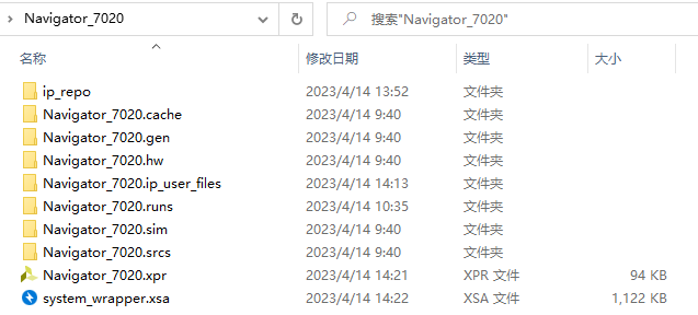 笔者以领航者7020开发板为例,路径为:开发板资料盘(A盘)\4_SourceCode\3_Embedded_Linux\vivado_prj,在这个目录下有一个压缩包文件Navigator_7020.zip,将其在Windows系统下解压,解压后如下图所示:
