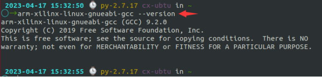 设置SDK的环境变量后,在终端输入命令arm-xilinx-linux-gnueabi-gcc --version来查看当前使用的交叉编译器版本号。看到如下结果,表明环境变量已经生效。