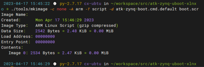 ./tools/mkimage -c none -A arm -T script -d atk-zynq-boot.cmd.default boot.scr