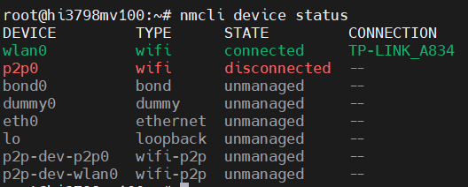 连接完成后使用命令可以查看到已连接的网络名称,路由器端可以分配一个静态ip地址,后面就可以摆脱网线,使用无线登录了。