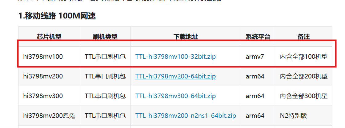 如:ec6108v9c 的cpu是 hi3798mv100 刷机包选择第一个TTL-hi3798mv100-32bit.zip