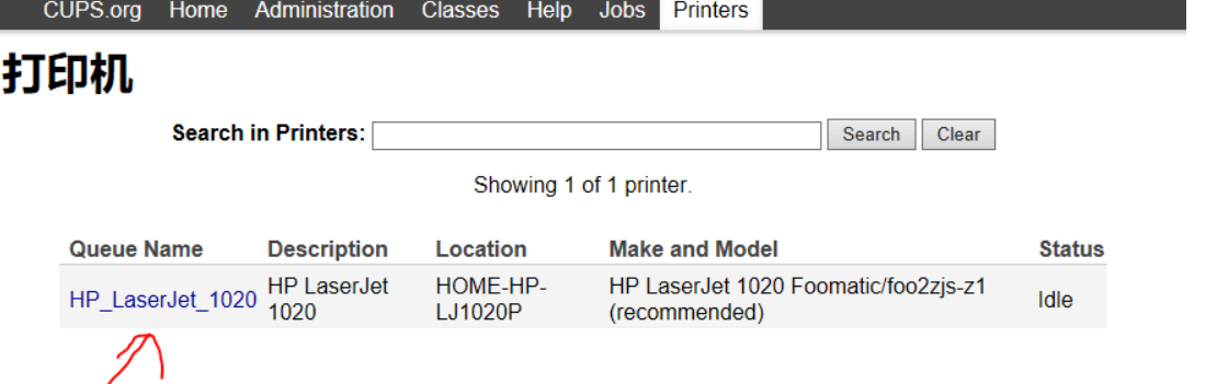 加完打印机以后,在Printers页面,就会出现刚才添加的打印机,点击打印机的名字,可以看到打印机的详细内容