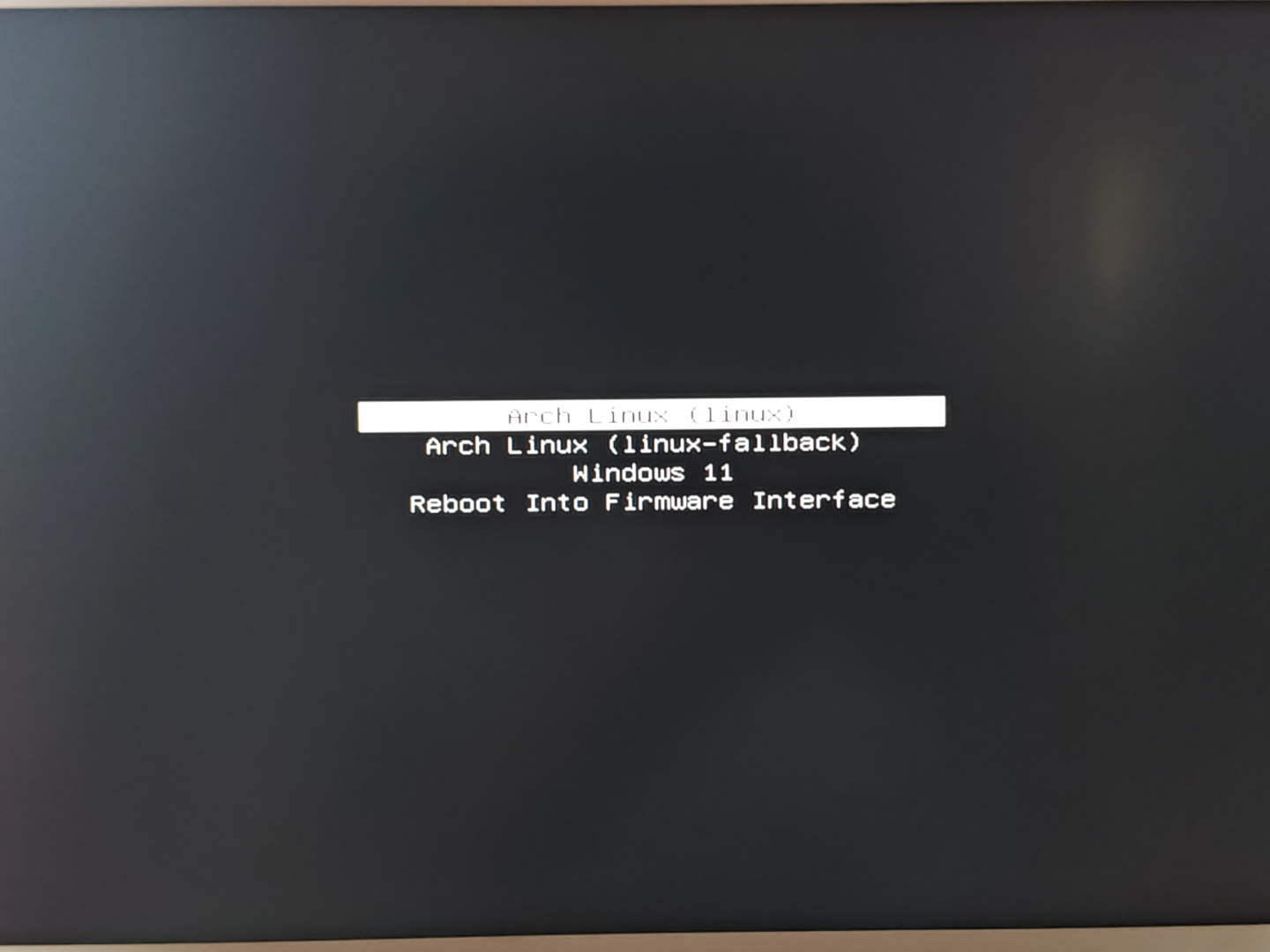 其实原因非常简单,Arch Linux的EFI文件确实在ESP分区里,可能是archinstall没有把EFI文件添加到UEFI启动项里。