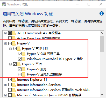 PS:系统为家庭版的用户在Windows功能中没有"虚拟机平台"以及"Hyper-V"两项,"虚拟机平台"需要用管理员身份启动Windows PowerShell额外使用如下命令开启,接着在如下网站里下载Windows内核功能包安装插件并重启电脑即可