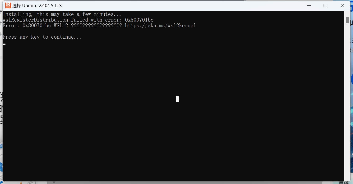 ,如果成功打印了信息即代表WSL启用成功,如果提示: wsl