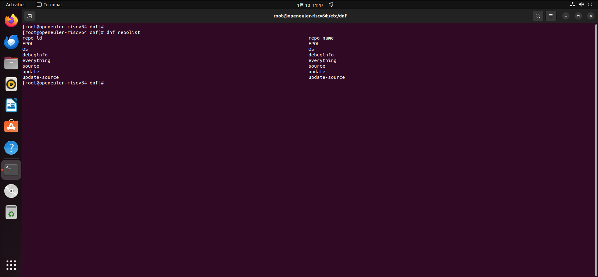 值得反思的是,究竟是什么原因,不能直接通过dnf下载呢?通过查看repolist,发现以下仓库