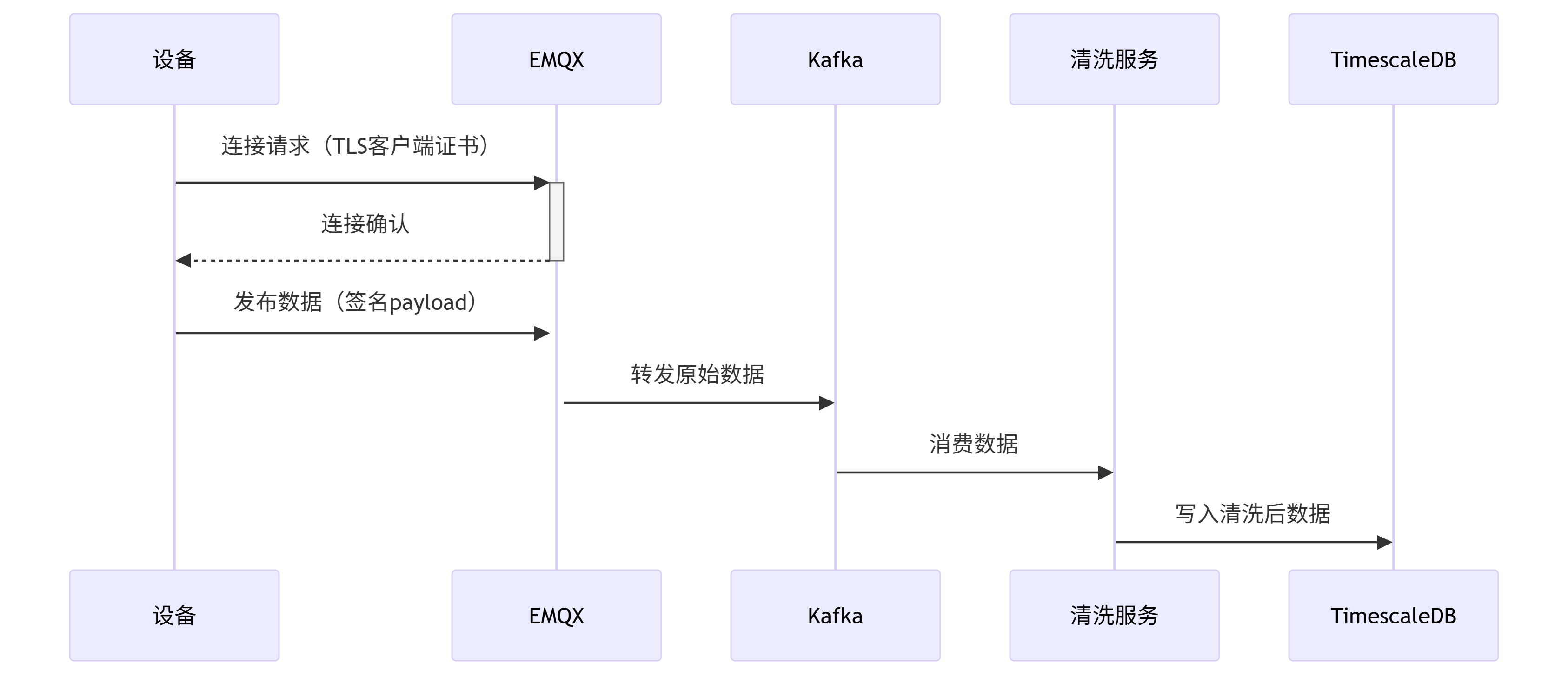 from kafka import KafkaConsumer import psycopg2 # Kafka消费者 consumer = KafkaConsumer( 'raw_sensor_data', Bootstrap_servers=['kafka1:9092', 'kafka2:9092'], security_protocol='SSL', ssl_cafile='ca.pem' ) # TimescaleDB连接 conn = psycopg2.connect("dbname=tsdb user=tsdbadmin") cursor = conn.cursor() for message in consumer: data = json.loads(message.value) # 数据验证 if not validate_sensor_data(data): continue # 数据清洗 cleaned = clean_data(data) # 写入数据库 cursor.execute( "INSERT INTO sensor_data (time, device_id, value) VALUES (%s, %s, %s)", (cleaned['timestamp'], cleaned['device_id'], cleaned['value']) ) conn.commit() # 更新缓存 Redis.set(f"latest:{cleaned['device_id']}", json.dumps(cleaned))