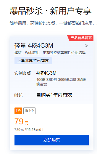 选择轻量服务器套餐,新用户79块1年,还要什么自行车,有公网IP