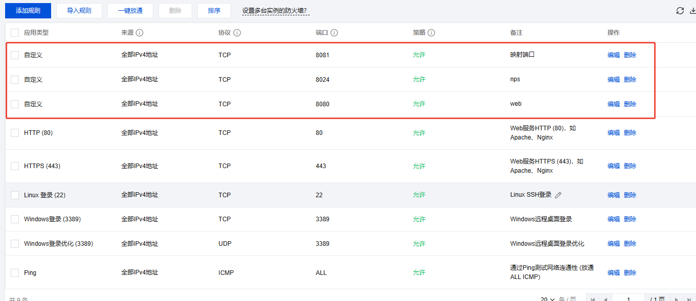 在腾讯云配置网页上修改服务器防火墙开放对应端口