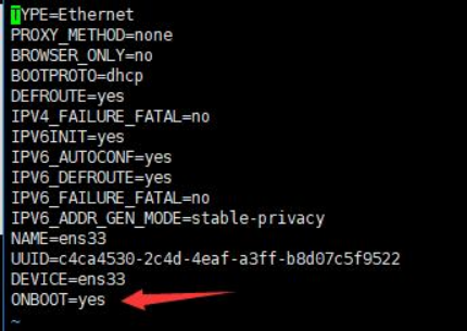 首先输入ip addr,查看ens33(不一定是ens33)网卡配置,输入 vi /etc/sysconfig/network-scripts/ifcfg-ens33