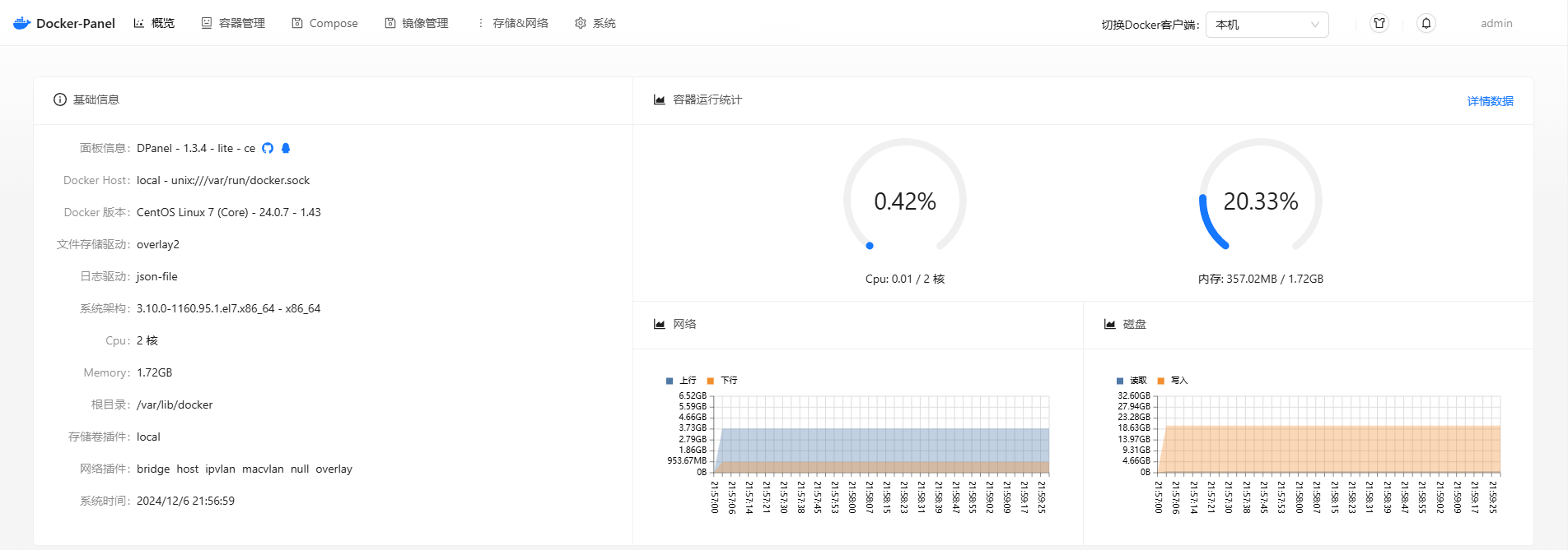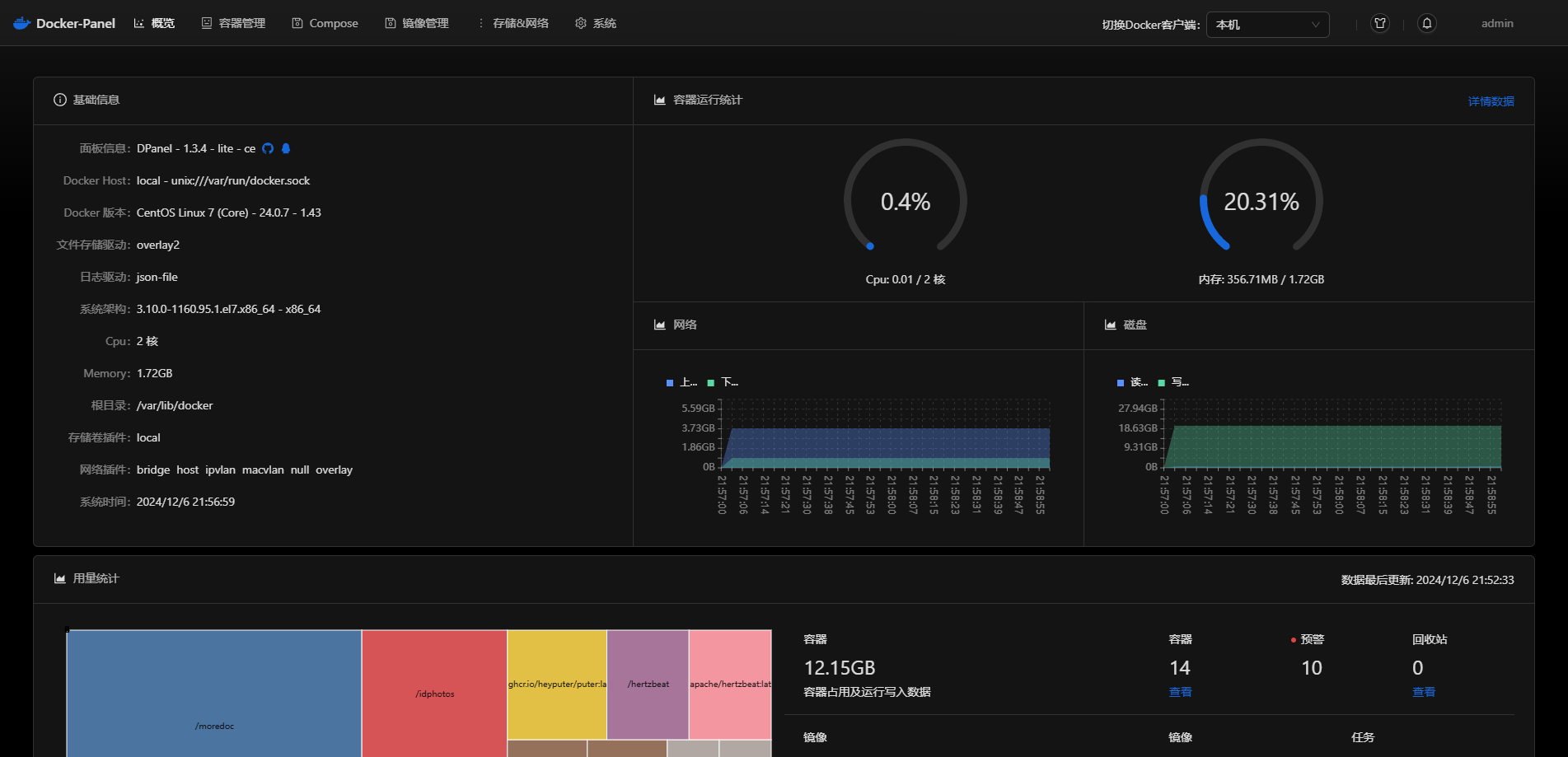 —— 一款 Docker 可视化面板系统,基于容器易于安装,资源占用低,提供完善的 Docker 管理功能。