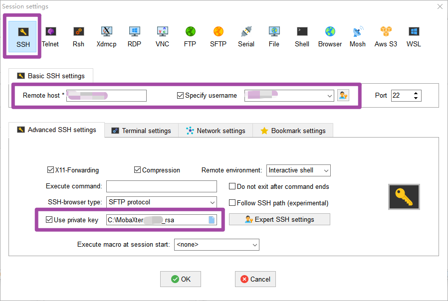 文件)连接学校的普通服务器,所以就选择SSH连接即可。如果是通过SSH连接,那么就需要配置好“Remote host”(服务器IP地址),“SpeC++ify username”如果有的话就填上;随后,如果通过私钥连接服务器,那么就勾选中“Use private key”这个选项,并选择自己的私钥文件。