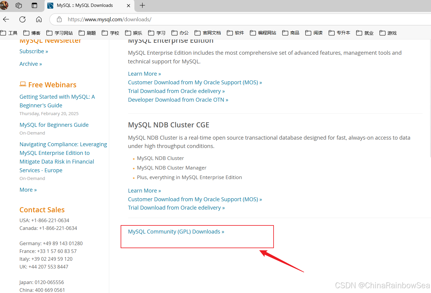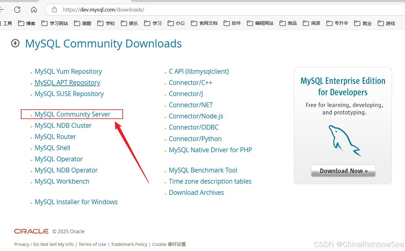 这里不能直接选择CentOS 7系统的版本,所以选择与之对应的 Red Hat Enterprise Linux https://downloads.mysql.com/archives/community/ 直接点Download下载RPM Bundle全量