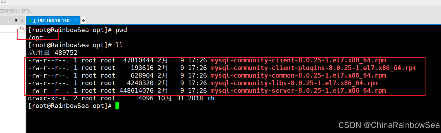 解压后rpm安装包 (红框为抽取出来的安装包)