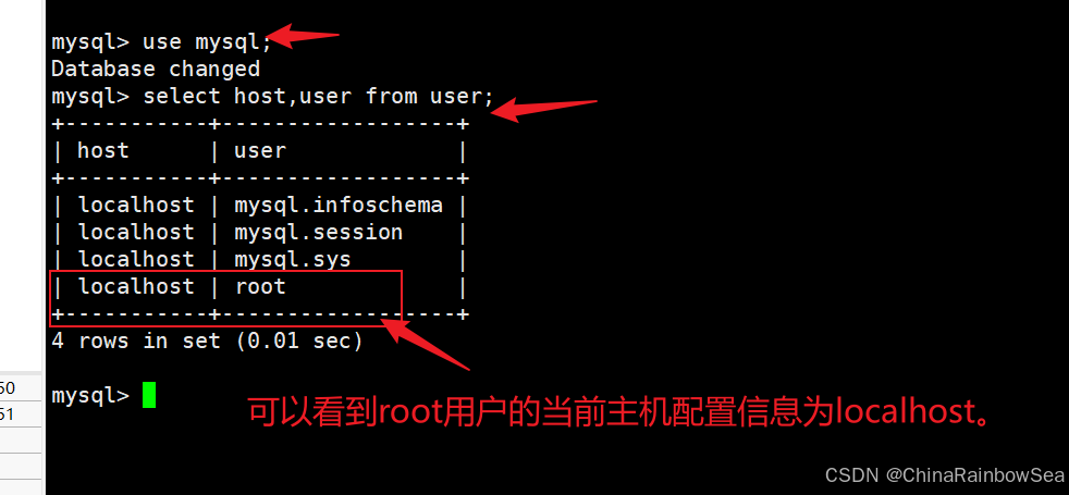 注意:在生产环境下不能为了省事将host设置为%,这样做会存在安全问题,具体的设置可以根据生产 环境的IP进行设置。