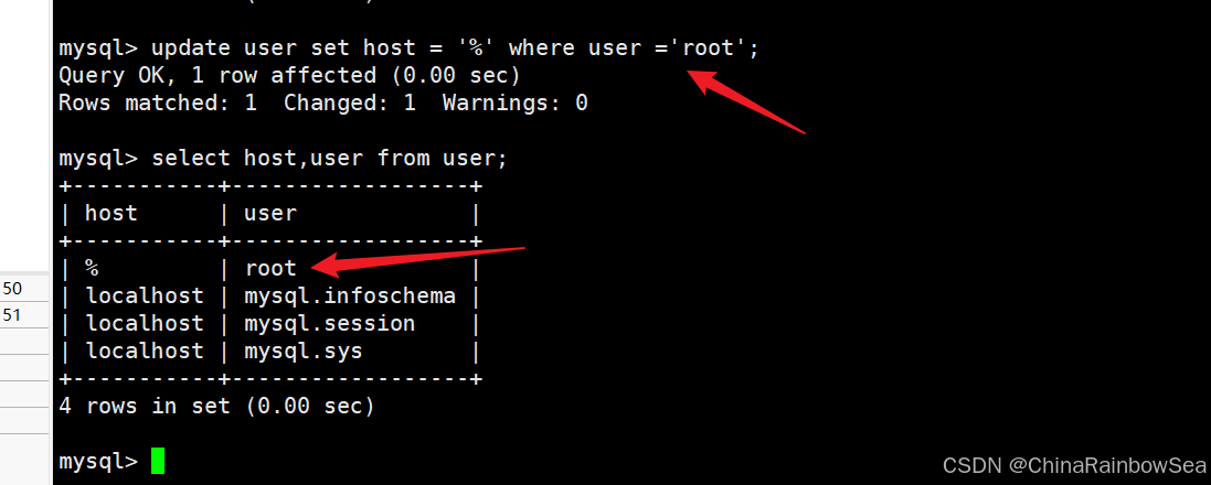 Host修改完成后记得执行flush privileges使配置立即生效: