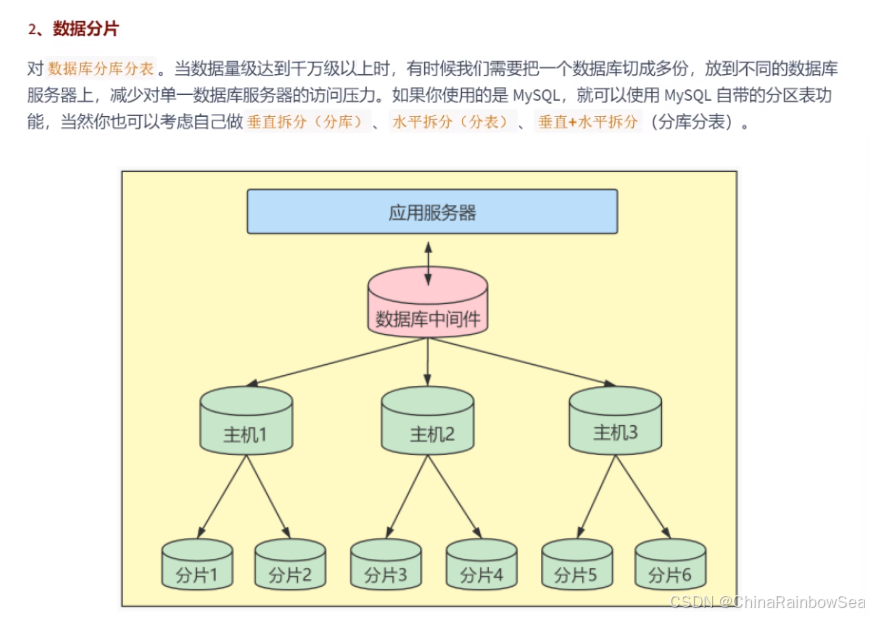 以上时,有时候我们需要把一个数据库切成多份,放到不同的数据库服务器上, 减少对单一数据库服务器的访问压力。