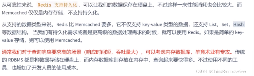 常用的键值存储数据库有 Redis 和 Memcached,它们都可以将数据存放到内存中。
