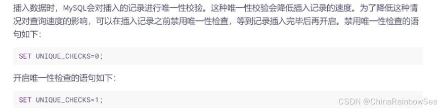 来禁止对唯一索引的检查,数据导入完成之后再运行set unique_check=1