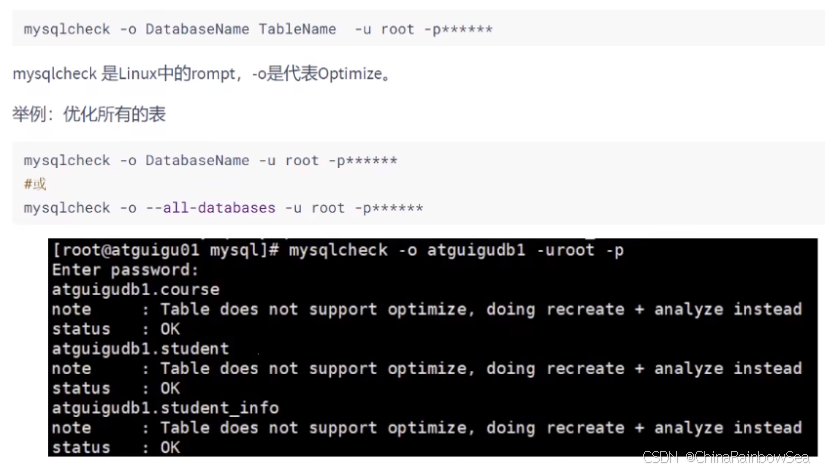 LOCAL | NO_WRITE_TO_BINLOG关键字的意义和分析表相同,都是指定不写入二进制日志。