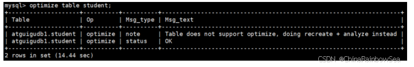 说明: 在多数的设置中,根本不需要运行OPTIMIZE TABLE。即使对可变长度的行进行了大量的更 新,也不需要经常运行,