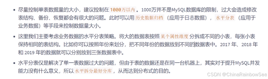 优化我们的读写策略,通过对数据库进行垂直或者水平切分,突破单一数据库积或数据表的访问限制,提升查询的性能。