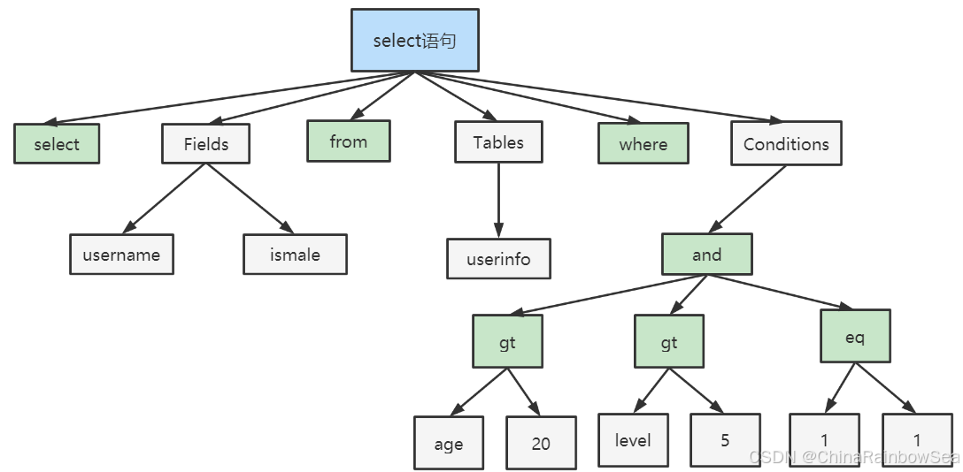 - 在解析器中对 SQL 语句进行语法分析、语义分析。将SQL语句分解成数据结构,并将这个结构 传递到后续步骤,以后SQL语句的传递和处理就是基于这个结构的。如果在分解构成中遇到错 误,那么就说明这个SQL语句是不合理的。