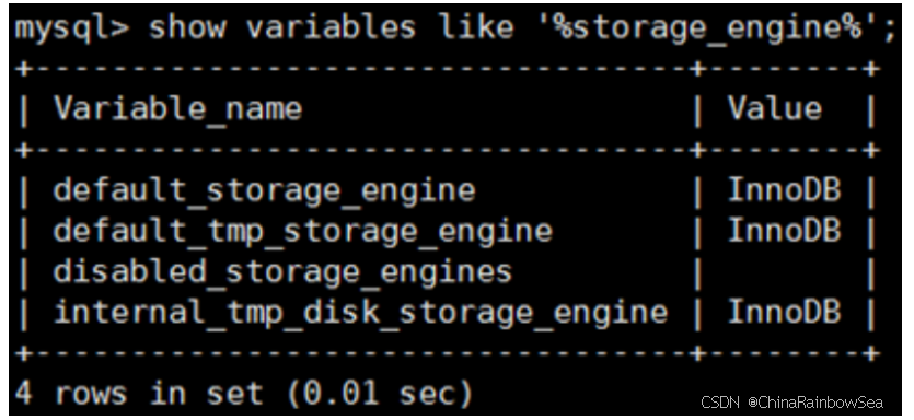 如果在创建表的语句中没有显式指定表的存储引擎的话,那就会默认使用 InnoDB 作为表的存储引擎。 如果我们想改变表的默认存储引擎的话,可以这样写启动服务器的命令行: