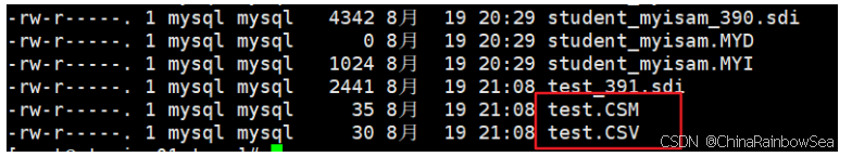 创建CSV表还会创建相应的元文件 ,用于 存储表的状态 和 表中存在的行数 。此文件的名称与表的名称相 同,后缀为 CSM 。如图所示