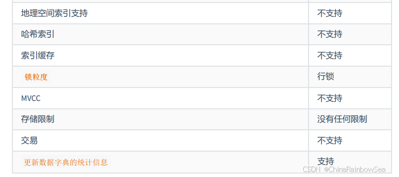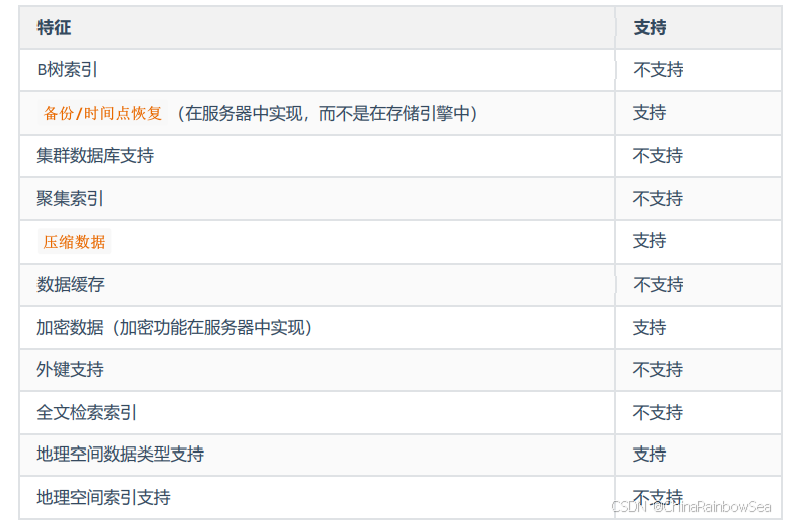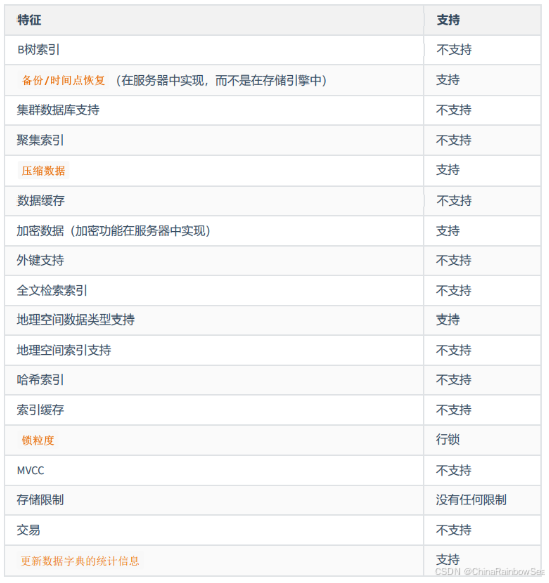 其实这些东西大家没必要立即就给记住,列出来的目的就是想让大家明白不同的存储引擎支持不同的功能。