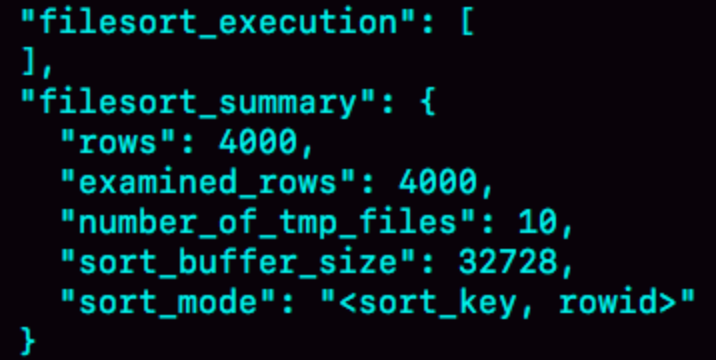而如果sort_buffer_size超过了需要排序的数据量的大小,number_of_tmp_files就会是0。sort_buffer_size越小,number_of_tmp_files的值会越大。