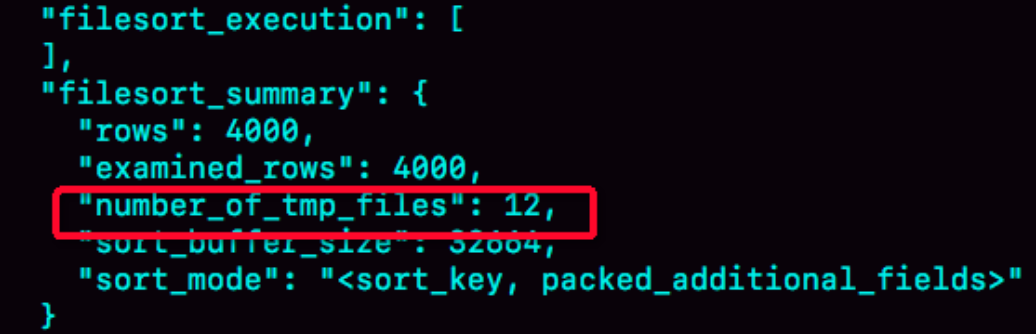 该方法通过查看information_schema数据库下的OPTIMIZER_TRACE表查看,用number_of_tmp_files字段查看: