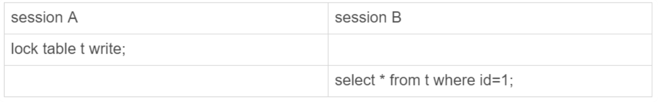 session A启动了事务,占有写锁还不提交,导致session B被堵住。