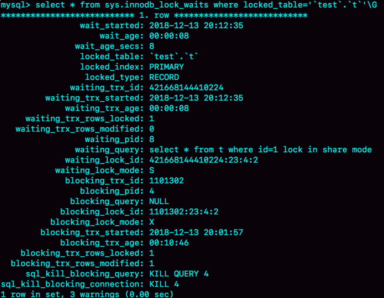 select * from t sys.innodb_lock_waits where locked_table='`test`.`t`'\G