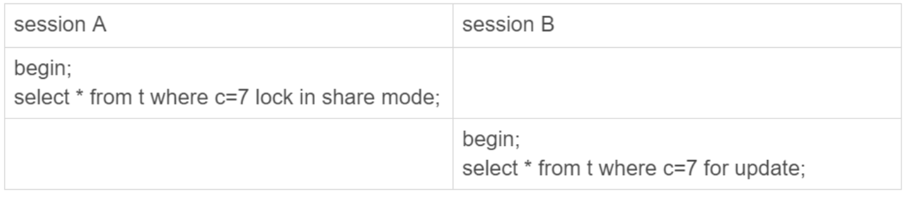 的行加锁,因此session B是可以执行这两条update语句的,这就破坏了session A在T1时刻的加锁声明。