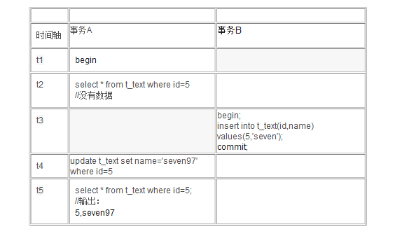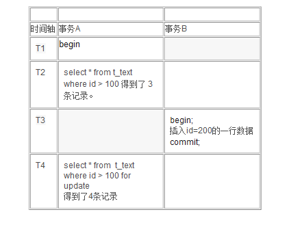 在事务A中按照某个条件先后两次查询数据库,两次查询结果的条数不同,这种现象称为幻读。不可重复读与幻读的区别可以通俗的理解为:前者是数据变了,后者是数据的行数变了。举例如下: