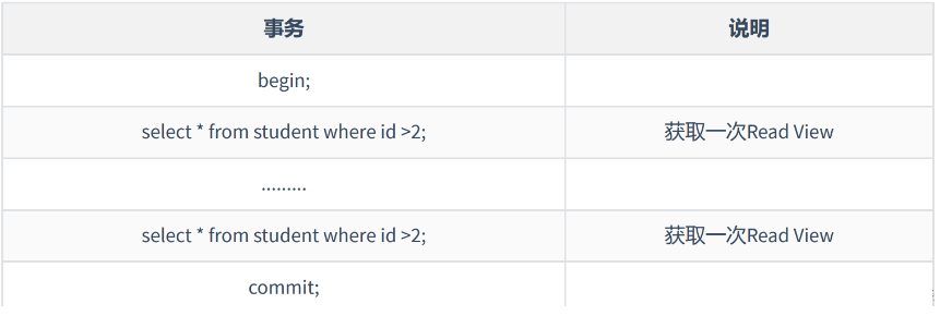 读提交隔离级别是在每次读取数据时,都会生成一个新的 Read View。