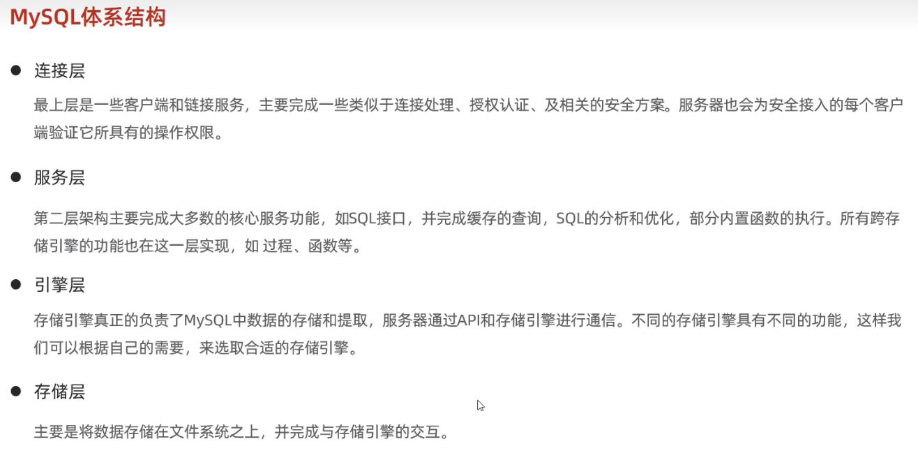 存储引擎层,存储引擎真正的负责了MySQL中数据的存储和提取,服务器通过API和存储引擎进行通信。不同的存储引擎具有不同的功能,这样我们可以根据自己的需要,来选取合适的存储引擎。数据库中的索引是在存储引擎层实现的。