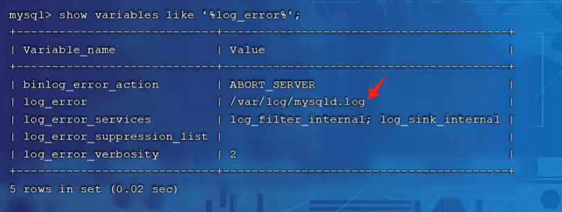 该日志是默认开启的,默认存放目录/var/log/,默认的日志文件名为mysqld.log。查看日志位置: