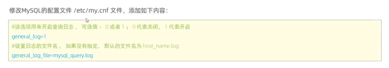 查询日志中记录了客户端的所有操作语句(包括所有的增删改查、DDL、DML、DQL语句),而二进制日志不包含查询数据的SQL语句。默认情况下,查询日志是未开启的。如果需要开启查询日志,可以设置以下配置: