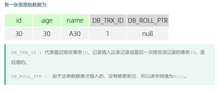 而上述的前两个字段是肯定会添加的, 是否添加最后一个字段DB_ROW_ID,得看当前表有没有主键,如果有主键,则不会添加该隐藏字段。