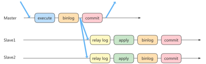 实际上主从同步是基于binlog进行数据同步的。在主从复制过程中,会基于3个线程来操作,一个主库线程、两个从库线程