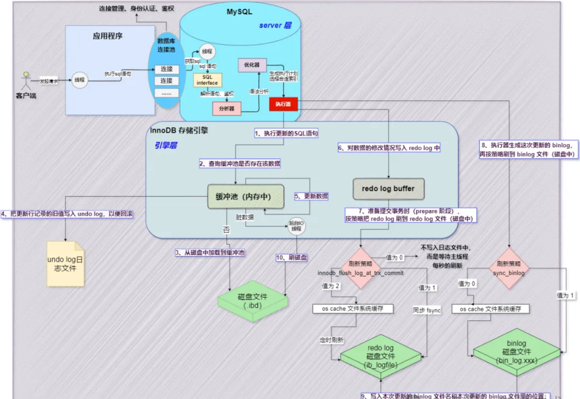 - 通知Server层,可以正式提交数据了, 执行器记录Binlog cache,事务提交时才会将该事务中的Binlog刷新到磁盘中。