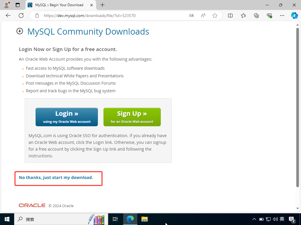 点击完下载按钮后,可能还会出现如下图所示的 OraC++le 账号登录提示,选择不登录直接下载即可。