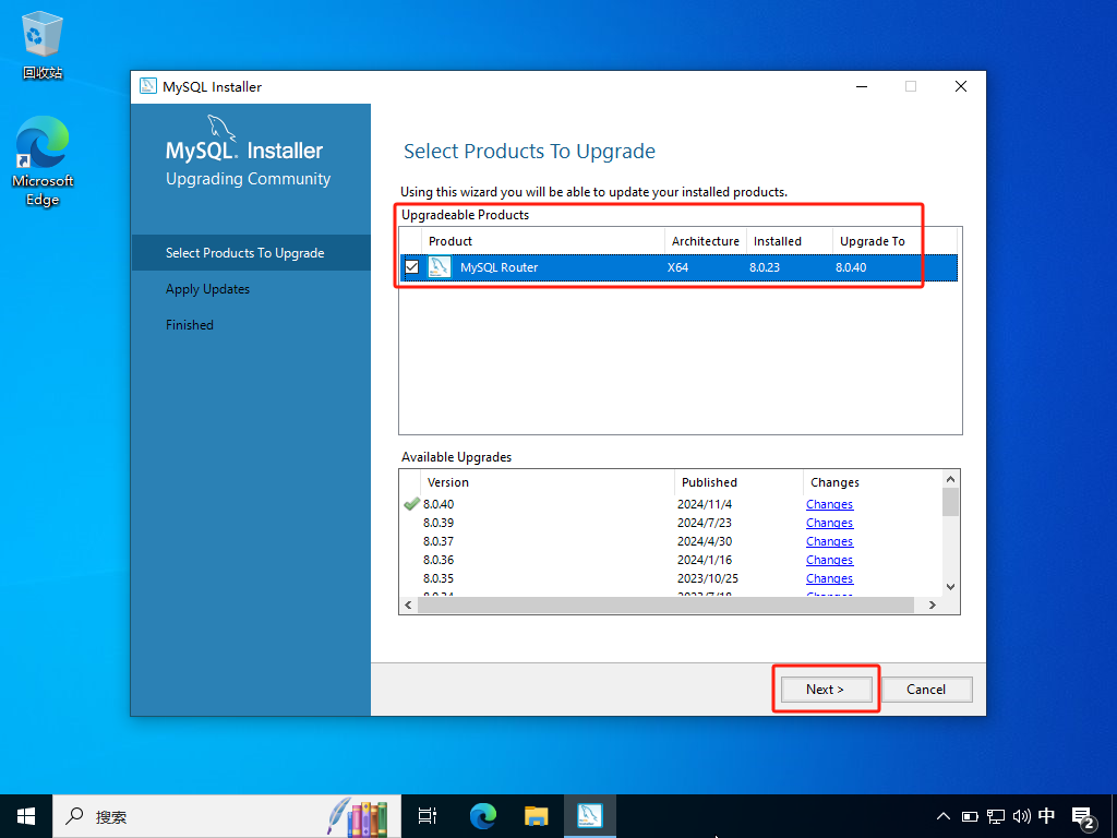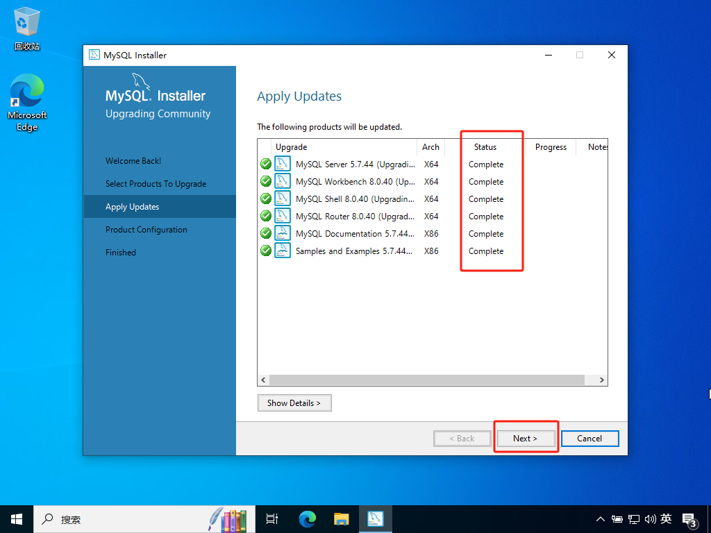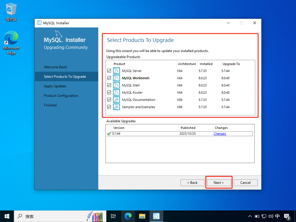 提示:升级时最重要的组件时 MySQL Server ,其他都无关紧要。