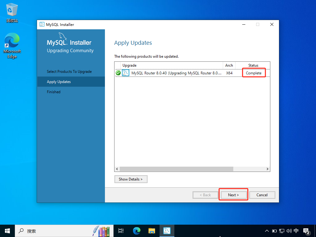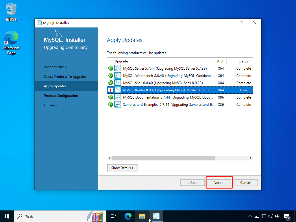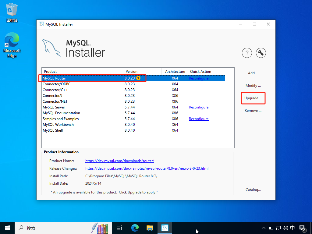 注意:升级组件时,MySQL Router 组件可能升级失败;可以继续升级配置完其他组件后,再回头升级 MySQL Router 组件。具体过程参考“3.11、处理升级失败的组件”小节。