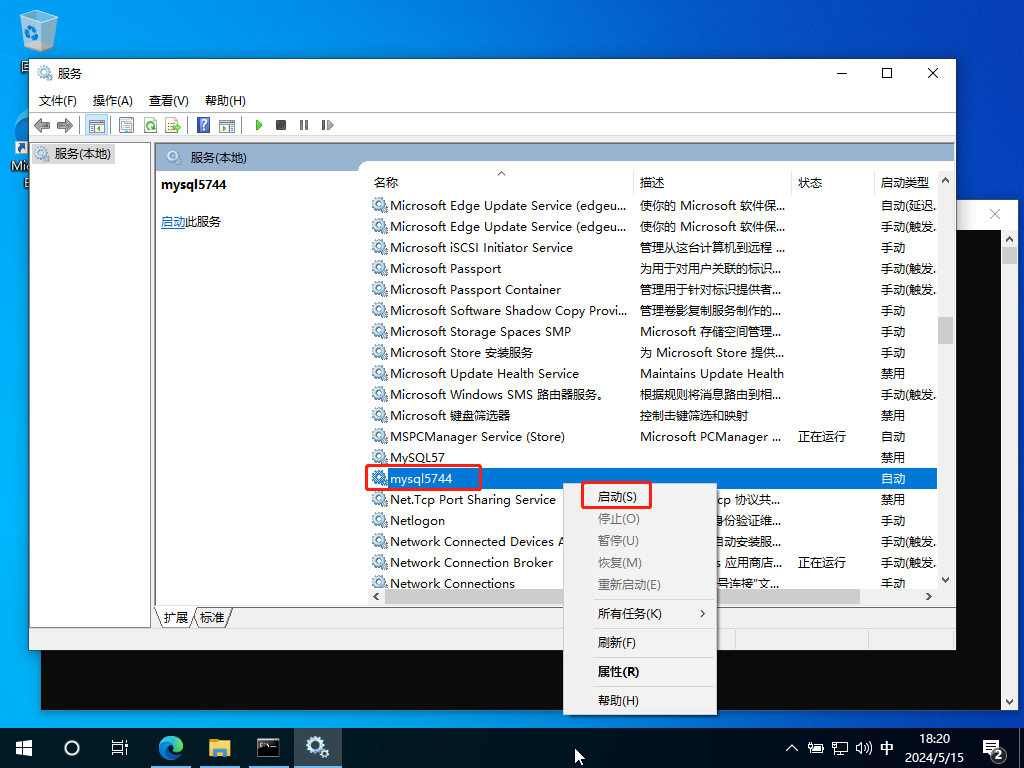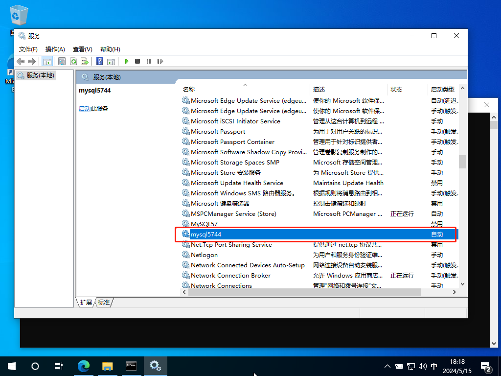 如上图所示,为了避免和旧 MySQL 版本的服务名有冲突, 将MySQL 注册到 Windows 服务时,指定了一个自定义的服务名(本例为:mysql5744)。